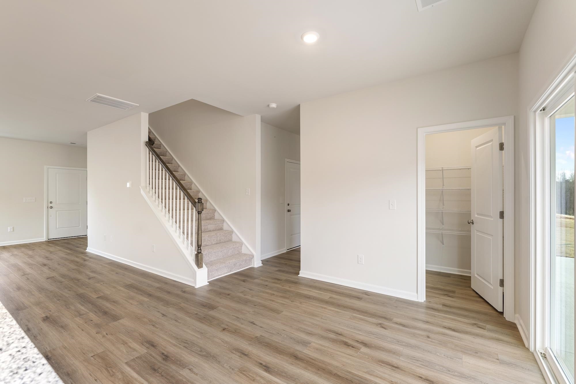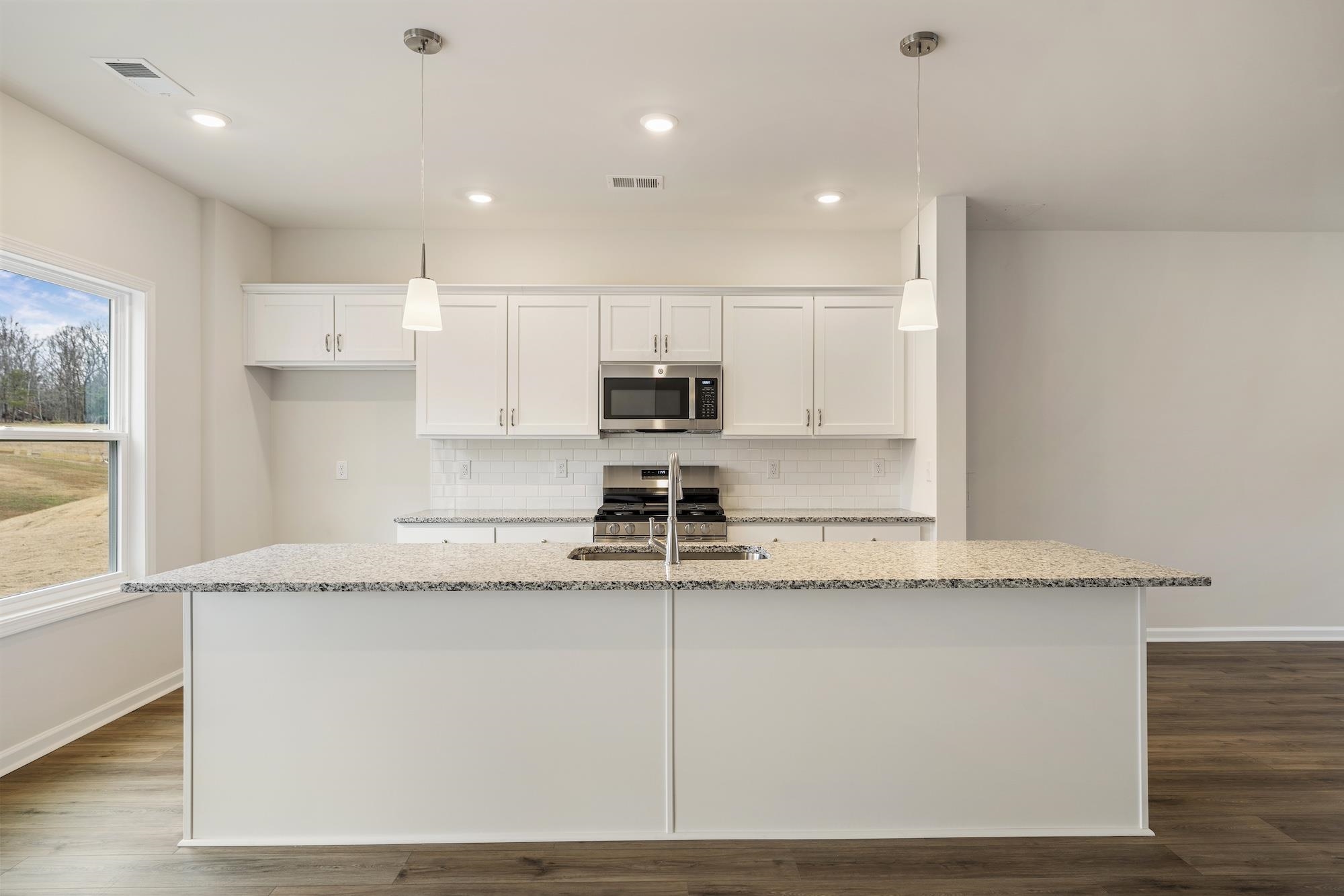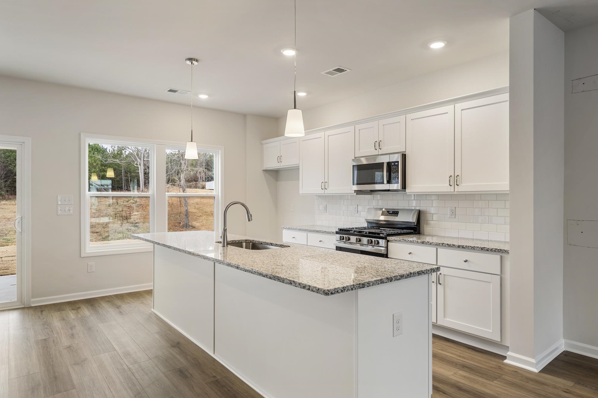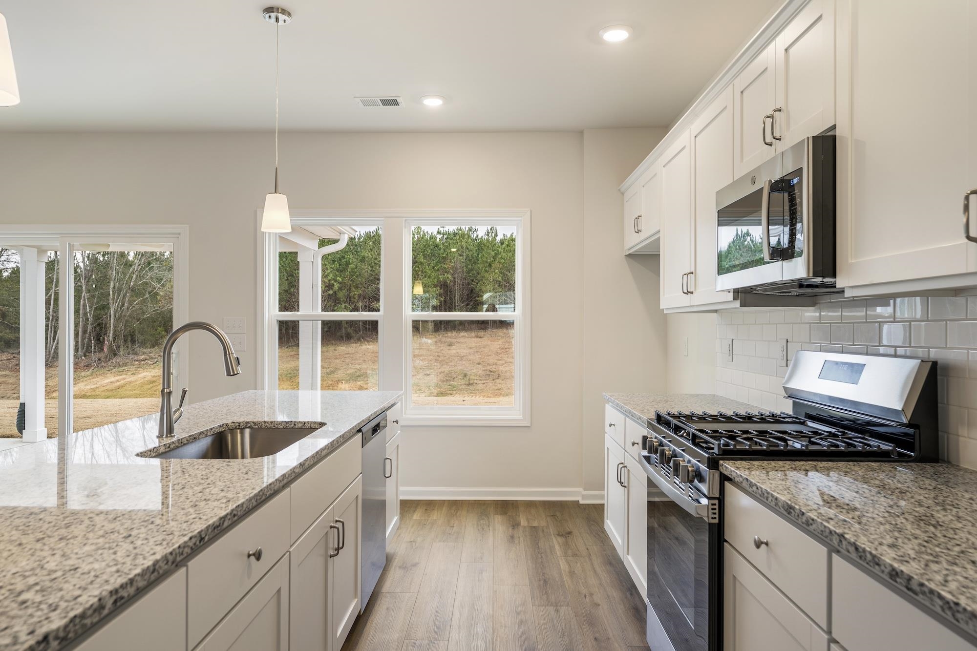 READY IN NOVEMBER! This home will impress you from the moment you see its modern white vinyl exterior with blue accents. You can easily envision yourself sitting on the large front porch. Upon entering, you will find a spacious family room that is perfect for entertaining family and friends. The upgraded kitchen features stainless steel gas appliances, shaker-style white cabinetry, and granite countertops. At the back of the home, there is a versatile flex room that can serve as a home office or playroom. The windows allow for great natural light and offer glimpses of the wooded backyard, which is over half an acre. Upstairs, there is plenty of space to spread out, with a spacious loft ideal for movie nights and three secondary bedrooms that provide ample storage. The primary suite is equally impressive, boasting plenty of closet space, quartz countertops with dual sinks, and a five-foot shower. Come see this wonderful home today in Fairview Falls!