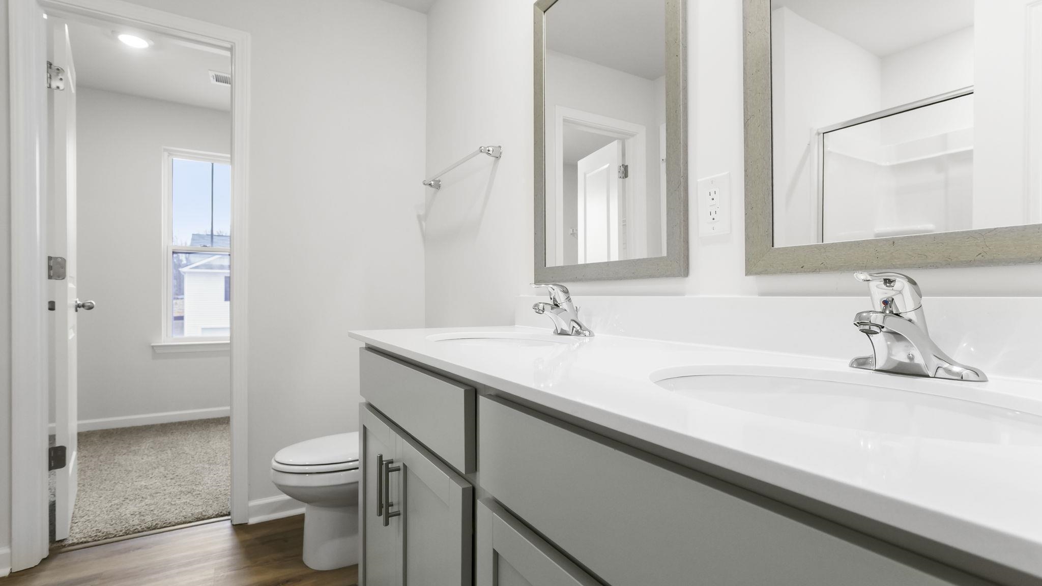 Check out 681 Evaleigh Street, a beautiful new home in our Varner Station community. This spacious two-story home features three bedrooms, two and a half bathrooms, and a one-car garage, providing the perfect space for both relaxing and entertaining. As you enter the home, you’ll be welcomed into the great room, a warm and inviting atmosphere. At the back of the home, the well-appointed kitchen opens into the dining area, creating an ideal space for gatherings. The kitchen is equipped with a pantry, stainless steel appliances, and a large breakfast bar, making it perfect for both cooking and casual dining. The primary suite Features a peaceful retreat with a large walk-in closet and an en suite bathroom featuring dual vanities and a spacious shower. The two additional bedrooms share a full bathroom with dual vanities, providing ample space and convenience. The laundry room is also located on the second floor for added convenience. Outside, you’ll enjoy a patio that’s perfect for outdoor entertaining or simply soaking in the beautiful weather. With its spacious design and well-planned layout, this home Features both comfort and functionality for modern living. Pictures are representative.