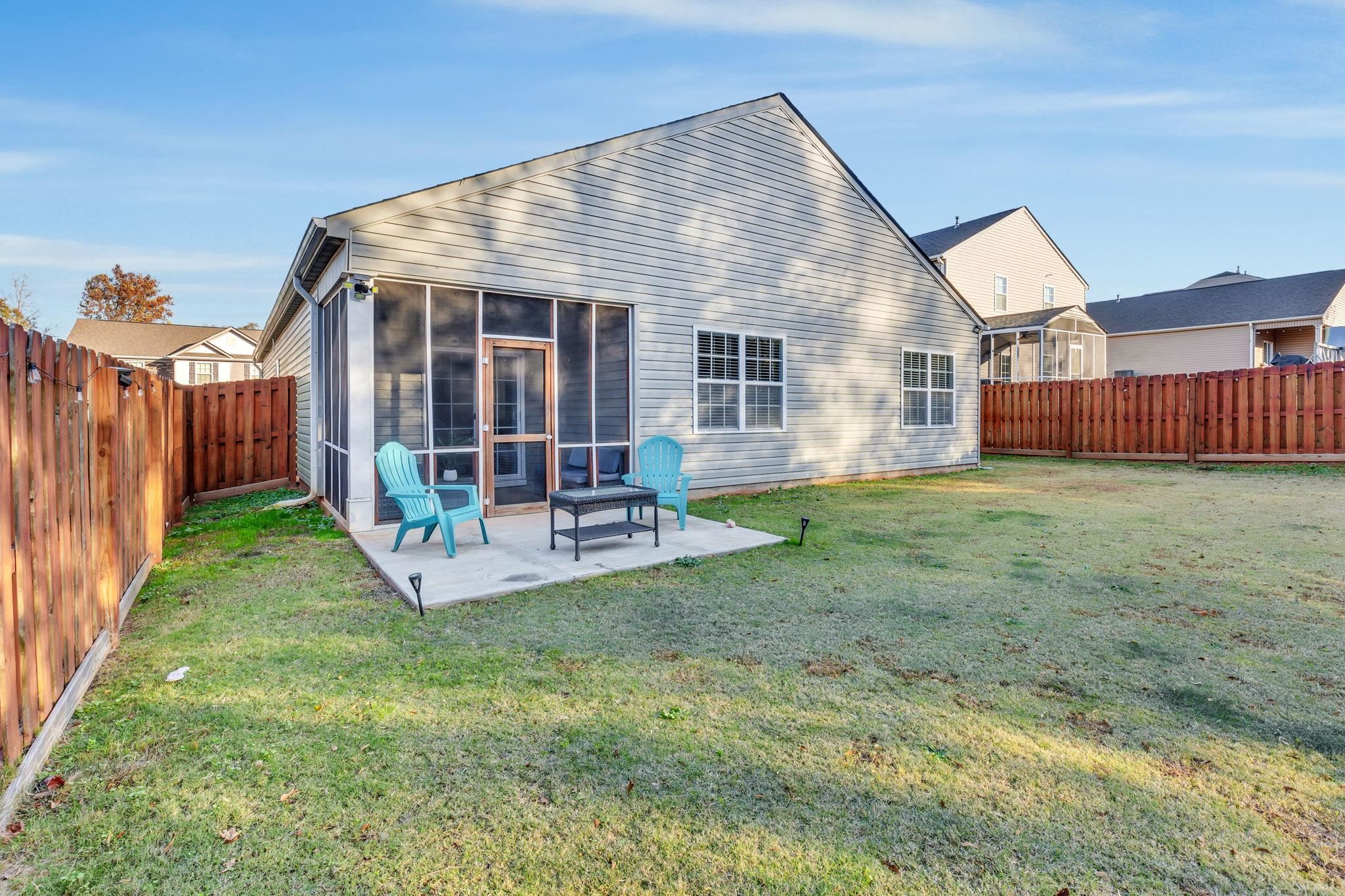 Welcome to 461 All Seasons Drive in Clairmont Estates, a beautifully maintained home tucked away on a quiet cul-de-sac in Boiling Springs. Built in 2019, this single-story home offers just under 1,700 sq. ft. of well-designed living space with an open-concept floor plan and modern finishes throughout. You’ll love the large, flat lot with mature trees in the back, a fully fenced yard, and an extended patio — perfect for outdoor gatherings. A screened porch overlooks the backyard, providing a peaceful spot to unwind on warm evenings. Inside, the home features luxury vinyl plank flooring throughout, a spacious kitchen with a large island ideal for entertaining, and a bright, open living area that feels both welcoming and functional. Every room is thoughtfully placed for comfort and flow, including a convenient laundry room. Enjoy the serenity of country living while still being close to shopping, dining, and all that Boiling Springs has to offer. This home has been meticulously cared for and is truly move-in ready — an easy home to maintain and love for years to come. This home is perfectly situated just minutes from downtown Spartanburg, with quick access to I-26, I-85, and Highway 9. This home is located about 20 minutes to BWM and GSP airport.