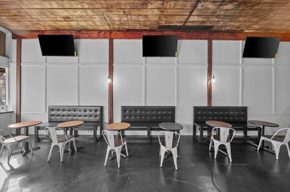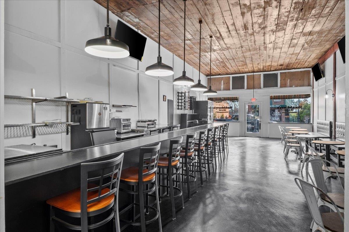 Discover 116 W Main Street, a versatile commercial storefront situated in the vibrant heart of historic downtown Union, South Carolina. Ceilings throughout feature recycled wood, adding a unique, eco-conscious touch to the interior. A standout element includes the 1000 square foot patio space ready for development, complete with zoning permissions for installing a BBQ grill to facilitate outdoor cooking and dining experiences. This patio provides fabulous sunset views and connects via a private alley directly to Main Street, opening up all kinds of possibilities for business expansion or creative uses. With a 10-year-old roof and recently rebuilt back area, the property ensures durability and modern appeal. Positioned across from the newly renovated courtyard and within easy walking distance to USC-Union, this location thrives in a dynamic community setting
