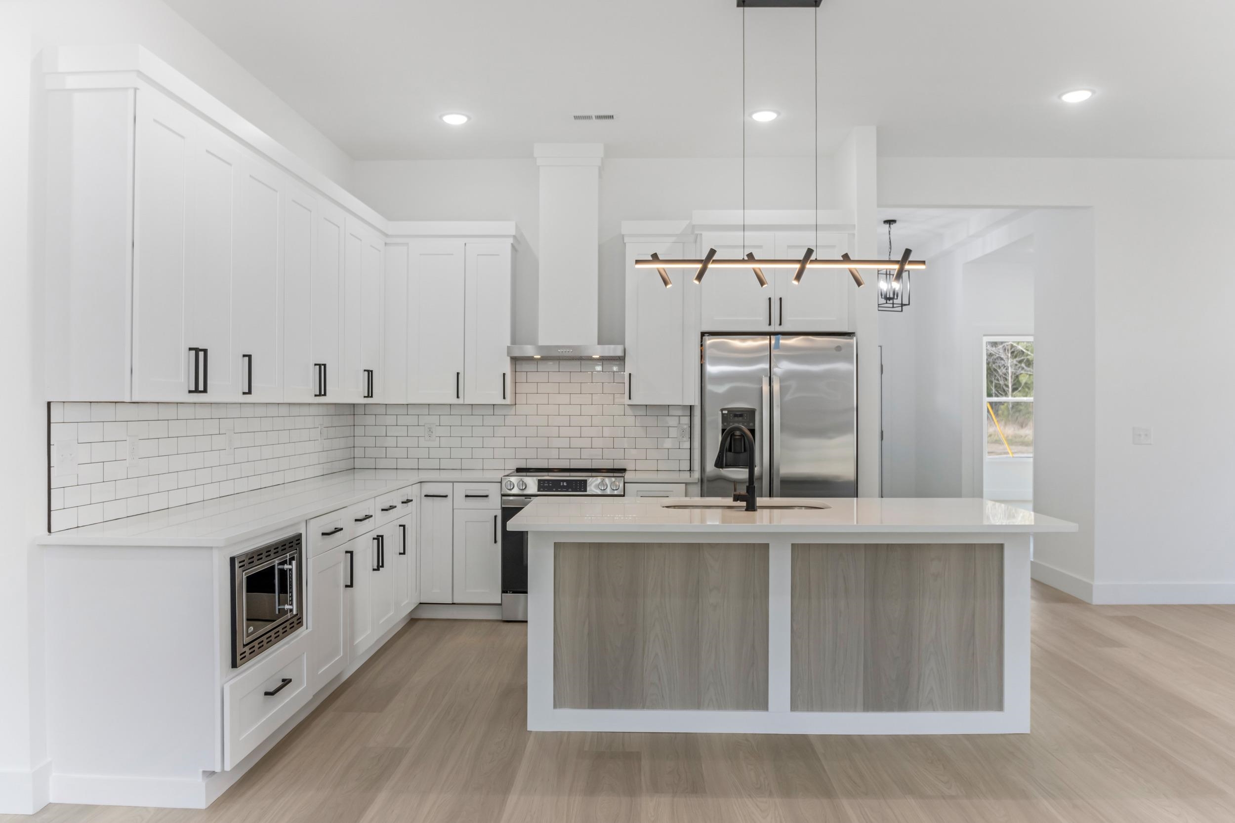 Welcome to this beautiful new construction home where high-end upgrades and thoughtful design offer comfort, convenience, and modern style throughout. The open-concept living space features dramatic 10-foot ceilings and luxury vinyl flooring, no carpet and easy maintenance. The owner’s suite is a private retreat with 10-foot tray ceilings, a walk-in closet, and a primary bath with dual vanities. Modern ceiling fans are installed in every bedroom and the main living area. The kitchen is fully equipped with a designer backsplash, ample cabinetry, and modern appliances, including the refrigerator. Perfect for cooking or entertaining with both style and function. The living area features a large screen fireplace, creating a warm focal point. The garage includes extra shelving for additional storage, showing that every detail of this home has been carefully planned. Enjoy a level, large backyard ideal for outdoor activities, gardening, or summer gatherings. Property has its own well for added convenience and savings. No HOA. Move-in ready with quality finishes throughout, don’t miss this opportunity.