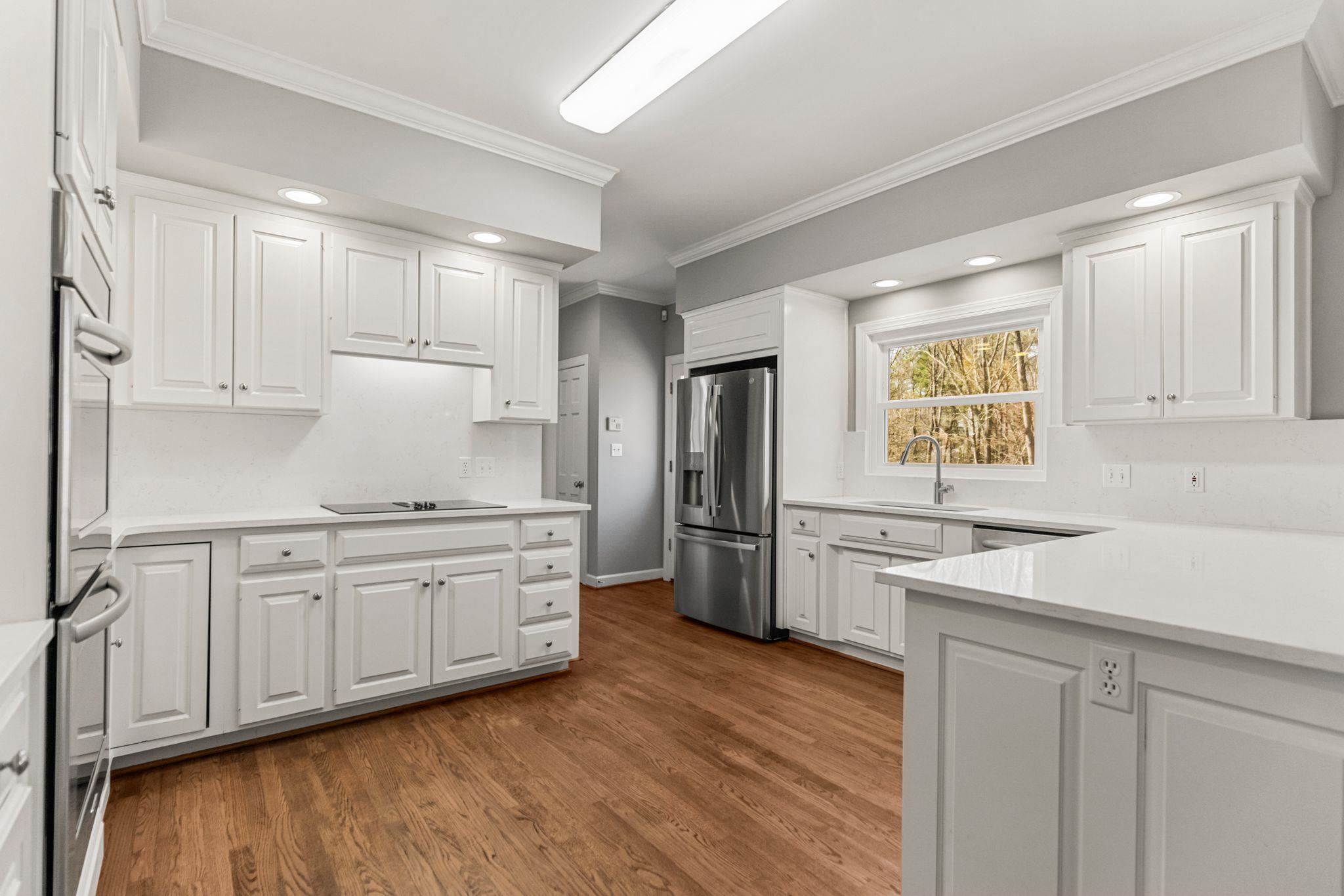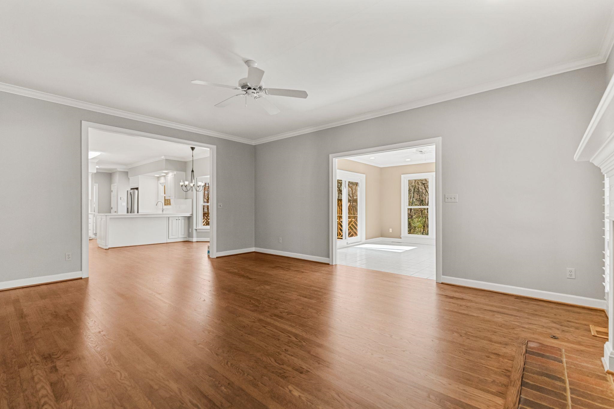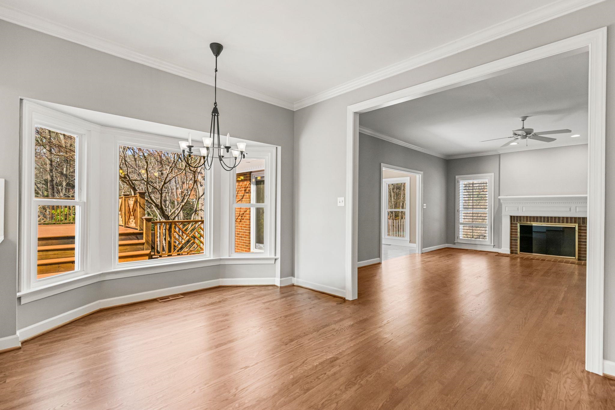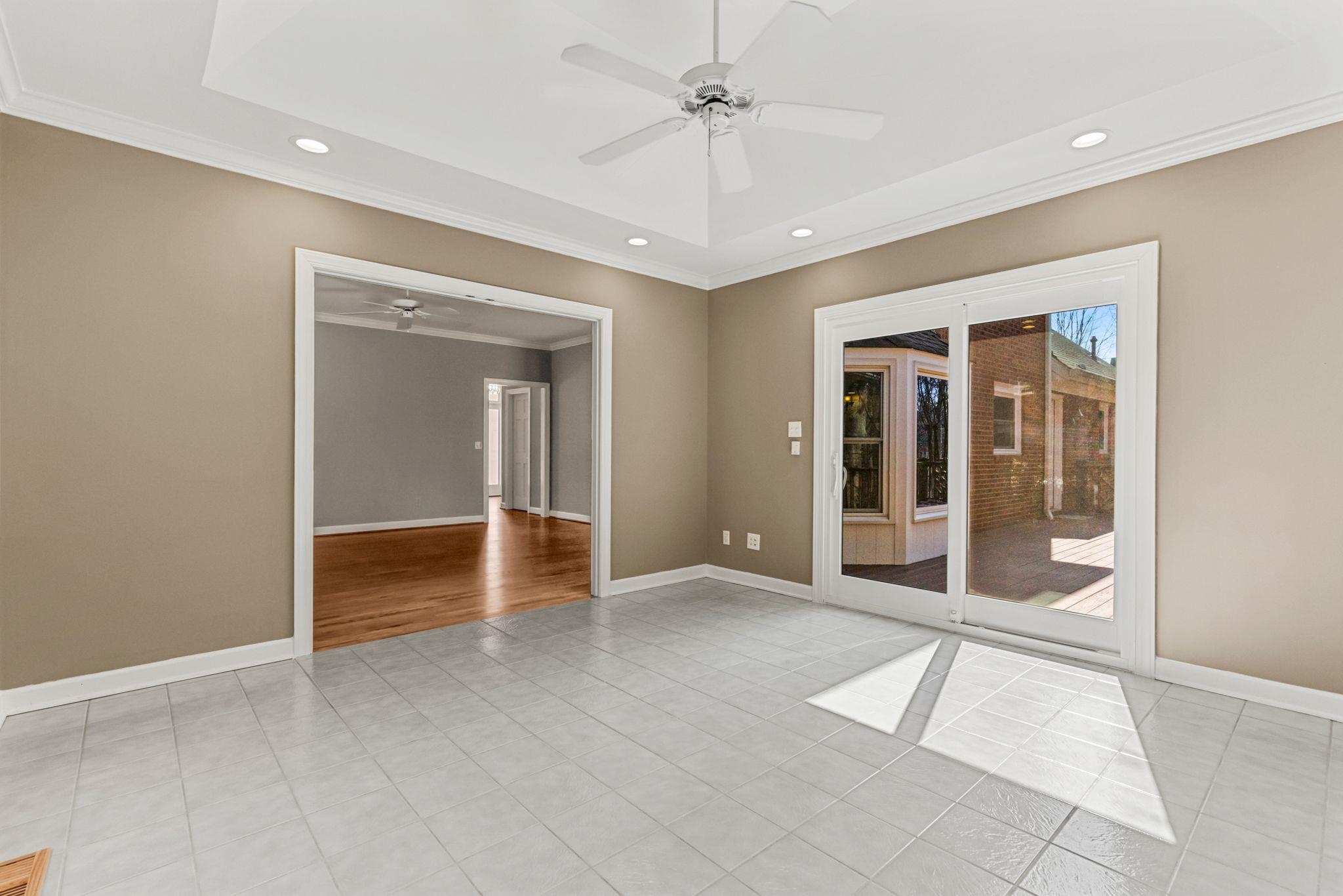 Beautifully updated home in the desirable Woodridge neighborhood on Spartanburg’s Westside featuring refinished hardwood floors, renovated primary suite, quartz kitchen upgrades, tankless Rinnai gas water heater, and extensive smart-home features. This move-in ready home has been thoughtfully improved throughout with fresh interior paint, brand new pet-resistant carpet upstairs, high-efficiency windows with transferable warranty, and Lennox Elite HVAC systems serving both floors. The main living areas offer a comfortable and inviting flow. The family room features a woodburning fireplace with gas starter, raised panel mantel, brick surround, plantation shutters, recessed lighting, and ceiling fan. Just beyond, the sunroom with tray ceiling and sliding doors to the deck creates a bright space for relaxing or entertaining. The kitchen has been beautifully refreshed with new quartz countertops, full-height backsplash, freshly painted cabinetry inside and out, new hardware, and new stainless undermount sinks. Appliances include a new GE French door refrigerator, beverage center, GE downdraft cooktop, double ovens, and dishwasher. Smart home light switches and under-cabinet lighting add convenience, while a nearby wet bar area makes entertaining easy. The dining room includes a large built-in buffet/china cabinet providing both storage and charm. Upstairs, the primary suite has been completely renovated and offers a true retreat with heated tile flooring, oversized Pelham & White freestanding soaking tub, new tile shower with glass door, quartz double vanity with new lighting, and smart TV above the tub. Additional features include tile wainscoting, Bluetooth-enabled bath fan with lighting and speaker, and thoughtful storage including a large closet with locking door. Additional bedrooms feature large closets and ceiling fans, while the FROG provides flexible space to use as a media room, or guest suite with durable high-traffic flooring and excellent storage. Outdoor living is just as impressive with multi-level decks, new decking on the upper level, and freshly stained decking throughout. The backyard has new sod and a full irrigation system for both front and back yards. Beneath the upper deck is a large storage/workshop space with infrared heater that conveys. Additional highlights include Tankless Rinnai gas water heater, Nest learning thermostats on both floors, High-efficiency windows with transferable warranty, MyQ Wi-Fi garage door openers with phone control, Double garage plus extra refrigerator in garage to convey if desired. There is also a pre-paid HVAC maintenance service with CJ Compton Heating & Air. Located in the established Woodridge community, this Westside Spartanburg neighborhood is known for its mature landscaping, strong sense of community, and convenient access to shopping, dining, schools, and major commuting routes. This home offers the kind of spaces that make everyday living feel a little more special.